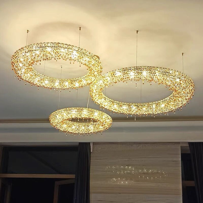 Unique Eccentric Circle Colorful Crystal Beads Chandelier for Living/Dining Room
