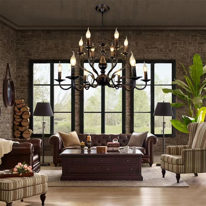 Vintage Country Style Multi-layer Iron Electronic Candle Chandelier for Study / Living Room / Cafe