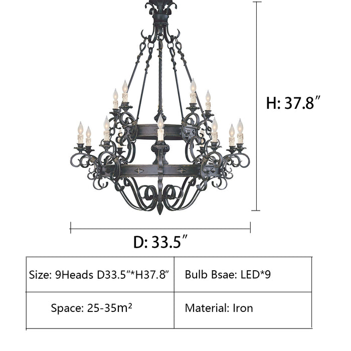 Vintage Iron Simple Candle Art Chandelier for Living Room / Villa / Stairs